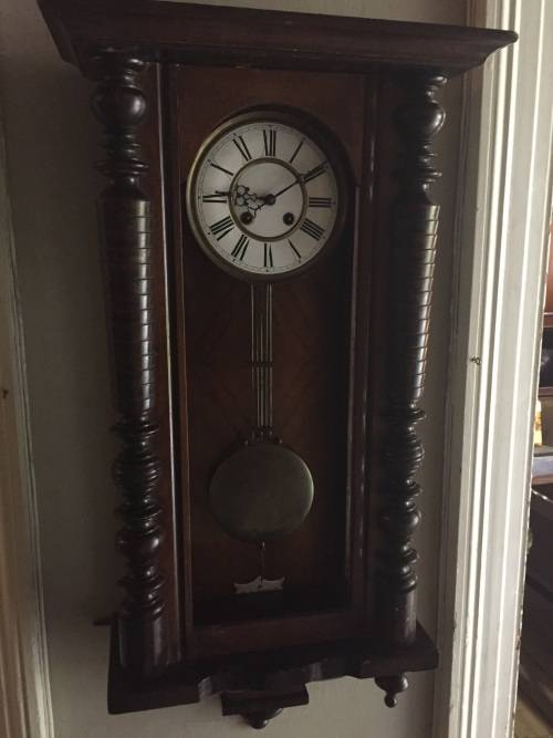 Mahogany Regulator Wall Clock , not working, front glass missing , works and stops