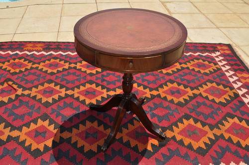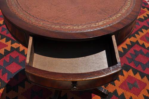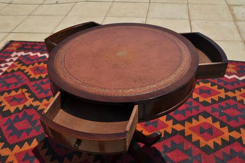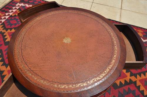 Mahogany Revolving Drum Table Part Veneered With Leather Inlay Brass Claw Feet On Castors 3 Drawers -- Collections Only!!!!!