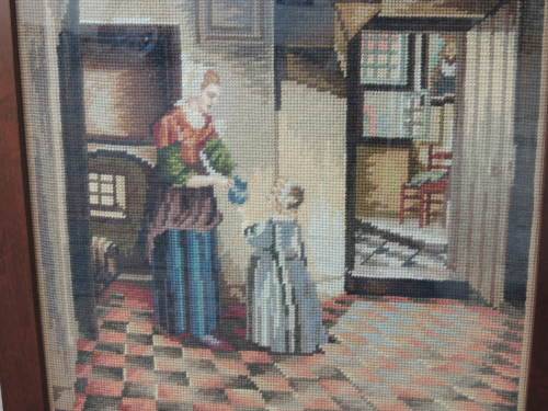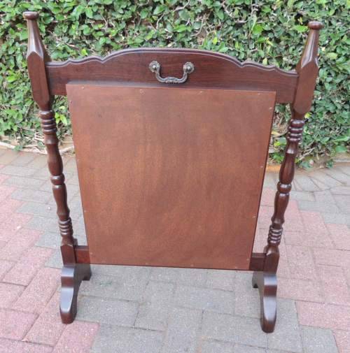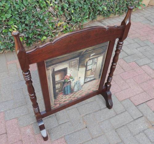 This is a great old piece of furniture in really good condition. It's 86cm high and 65cm wide. The tapestry is behind glass and this section measures 47cm X 49cm. There's a handle at the back for moving the fire screen. COLLECTION OR COURIER of your choice.