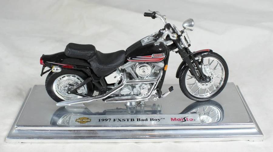 Such a stunning Maisto Harley Davidson 1997 FXSTB Bady Boy. It is in good condition and will make a wonderful addition to your collection! The scale of the model is 1:18. Please note, the bike is unboxed.