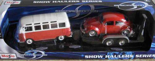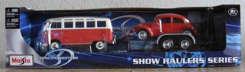 MAISTO SHOW HAULERS SERIES VW KOMBI, BEETLE & TRAILER COMBO 1/24/5 SCALE.(REDUCED)