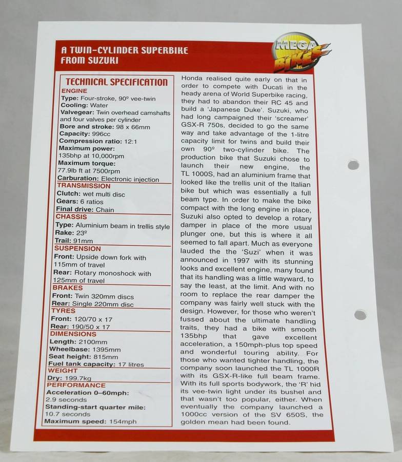 A beautiful Maisto Suzuki TL 1000S. It is in mint condition, in the blister pack and will make a splendid addition to your collection! The scale of the model is 1:18.