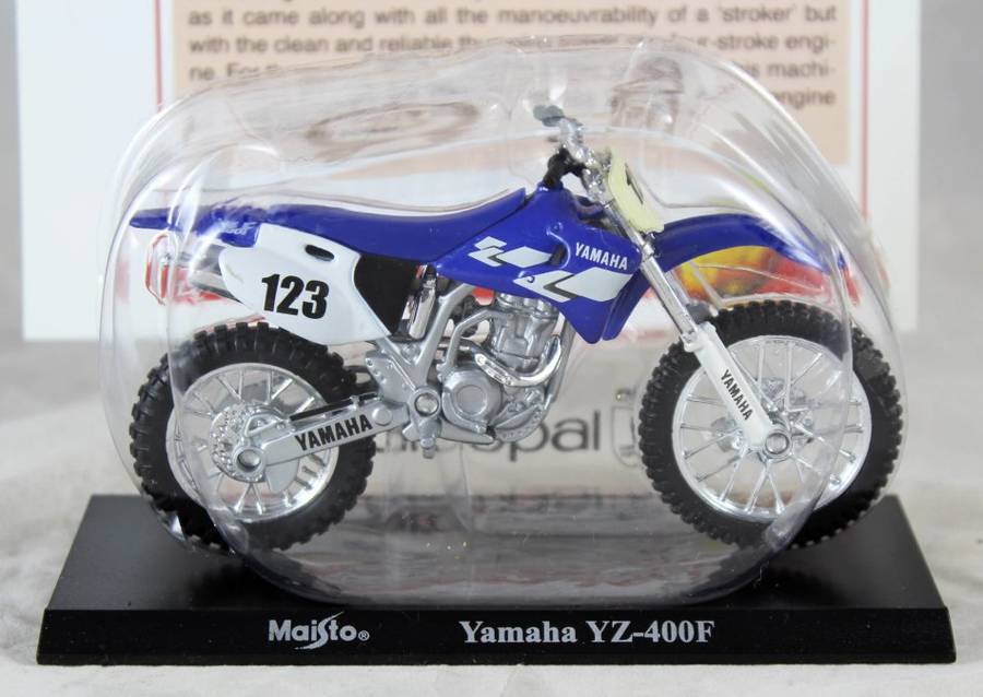 A stunning Maisto Yamaha YZ-400F. It comes in good condition in the blister pack and will make an excellent addition to your collection. The scale of the model is 1:18.