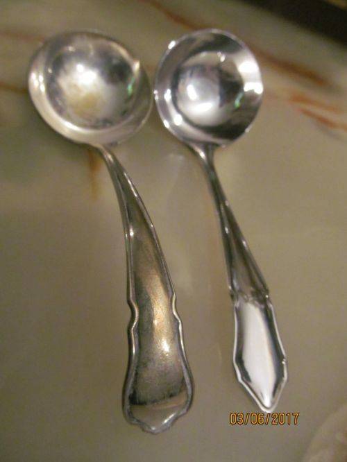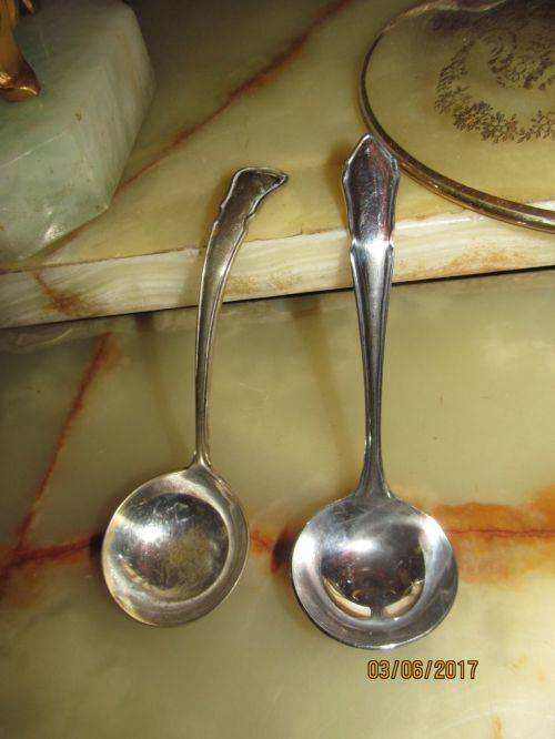 A SINGLE PERSON SILVER PLATED SOUP/DESSERT LADLE , AND THIS LOT CONSISTS OF TWO WHICH ARE BASICALLY IDENTICAL EXCEPT FOR THE LENGTH OF EACH.