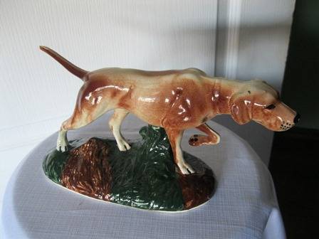 You are bidding on a Majolica Style Pointer Dog Figurine in mint condition no cracks or chips, the dog is backstamped underneath however I cannot read it!! Size 13cm tall x 26cm long