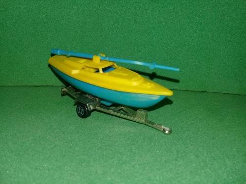 Majorette Plastic Boat On Metal Trailer ,Made In France 21385