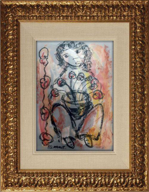 MAKE AN OFFER!! Frans Claerhout - Girl with flowers - Mixed Media - Signed and dated, COA included!!