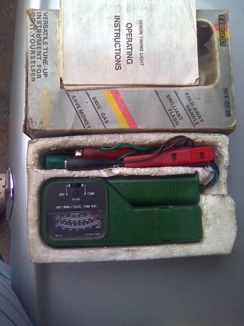 TRISCO XENON TIMING LIGHT WITH FOLD-AWAY HANDLE. SET TIMING, DWELL ANGLE AND R.P.M. COMES COMPLETE WITH INSTRUCTIONS. BOX DAMAGED BUT TESTER IS IN GOOD CONDITION AND STILL WORKS PERFECTLY. PERFECT FOR OLDER ENGINES. {CHECK OUT HENTHEL'S (THAT'S ME) OTHER GREAT LISTINGS}