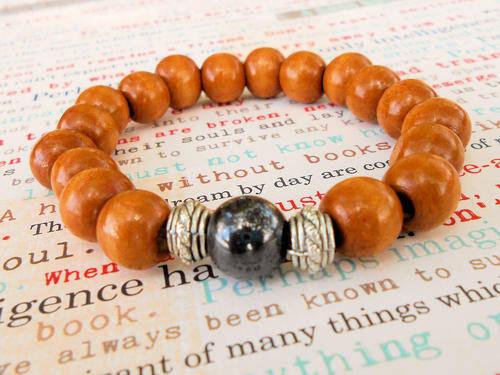 The 'guru' bead in this mala bracelet is Haematite. Haematite is a stone of healing, grounding, meditation, stabilisation and protection. It serves to enhance the memory and stimulates deep thought. It is for this reason that it is known as the ‘stone for the mind’, helping to sort out troubling issues on one’s mind. It is also a good stone to increase confidence and gets rid of self limiting concepts and enables one to reach one’s full potential.