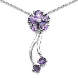 A sparkling amethyst-set flower hovers gracefully above two trailing amethyst rounds in this pretty necklace. Crafted of .925 sterling silver; the pendant and matching cable chain feature a rhodium finish to prevent tarnishing.