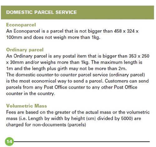 As of the 30th April the post office fees are based on either volumetric weight or actual weight which ever is the greatest