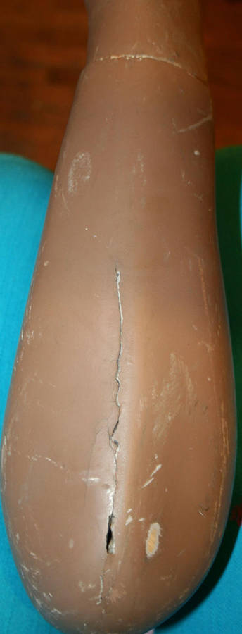 CONDITION: scuffed, crack on chest, crack on bottom of forearm