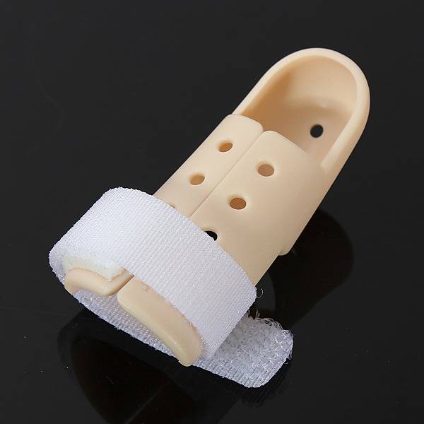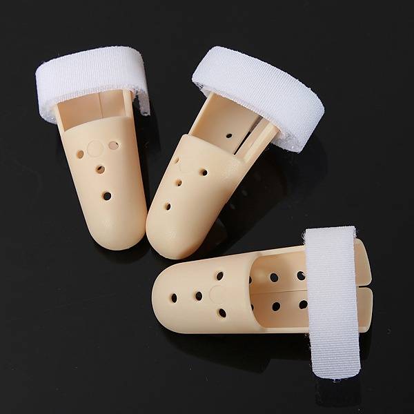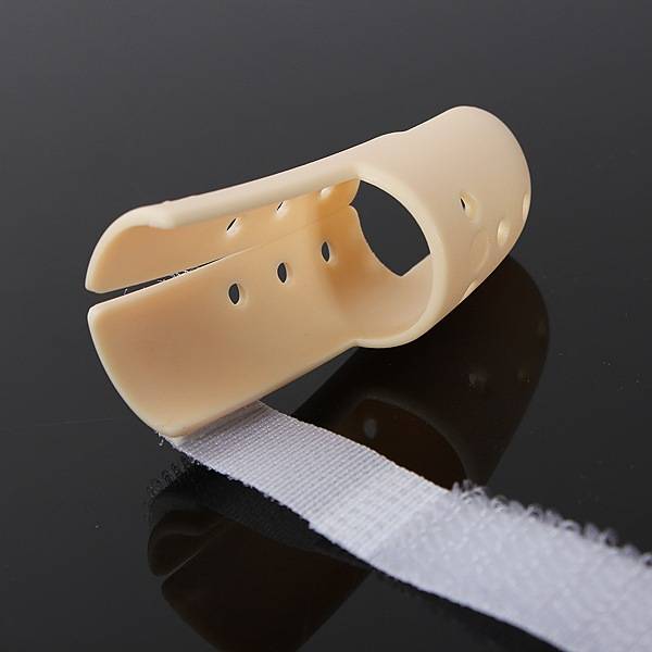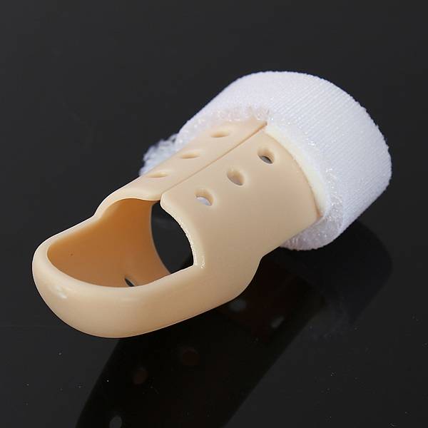 Features: The splint is made of plastic shaped like a well secure sleeve covering the tip of the finger including the last joint of the finger. It is secured in place by using tape and is intended to be kept on for protection and immobilisation to enhance healing.