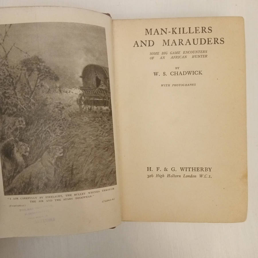 Hunting lion, elephant, hippo + a variety of game Angola, the Congo and Northern Rhodesia. Author's thrilling encounters with Elephant, Lion, Buffalo, Leopard, Hyena, Hippo and other dangerous animals in the African bush. Illustrated with photo plates