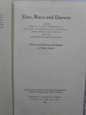Title: Man, Race and Darwin - papers read at a joint conference of The Royal Anthropological Institute of Great Britain and Ireland and the Institute of Race Relations