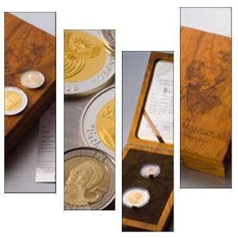 The medallion is a combination of sterling silver and 24 carat gold (½ oz).