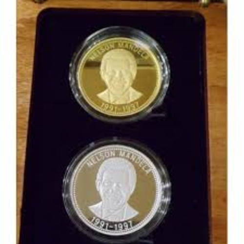 Mandela de klerk. Gold coins. Natura gold. Protea gold. Krugerrands. Prestige sets. Ponds. Shillings. Silver Coins.