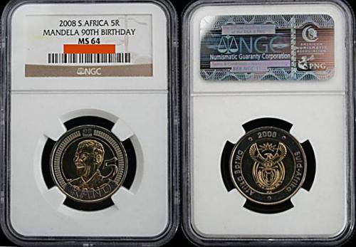 Mandela birthday MS64 R5 coin. Authentic NGC MS64 graded and slabbed.