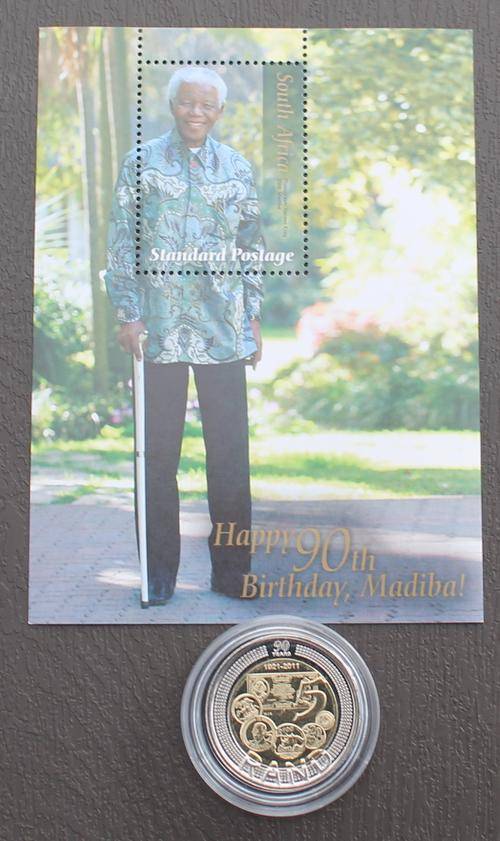 MANDELA COMBO!!! 2011 SARB 90th Anniversary Coin (IN CAPSULE) & 90th Birthday Postage Stamp!! NEW!