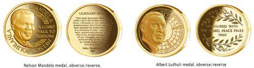 The Mandela Luthuli Laureate Twin set was minted by the Mint of Norway to honour both