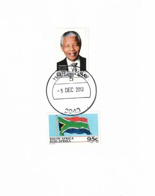 MANDELA STAMPS HAND FRANKED with the DAY of MADIBA'S PASSING.