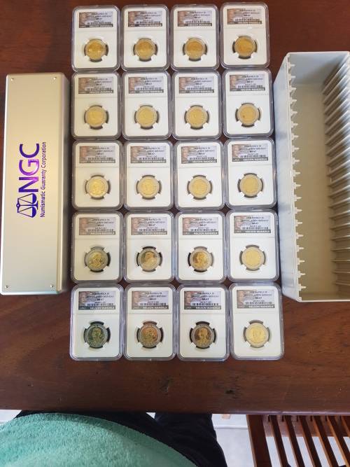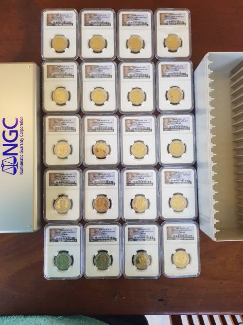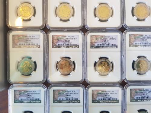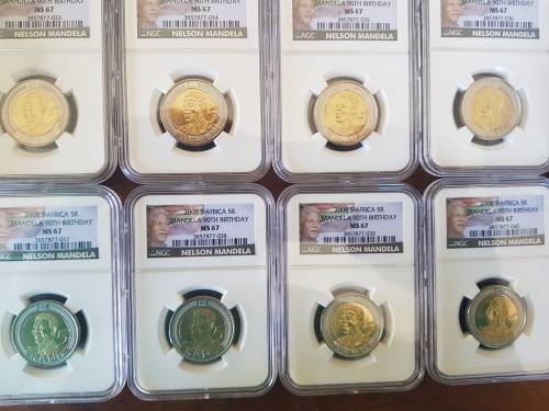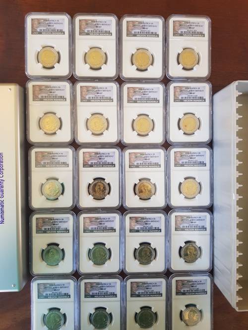 NGC DISPLAY BOX IS INCLUDED FROM NGC INCLUDING TWENTY SLABBED NGC MS67 R5 MANDELA 2008 BIRTHDAY COINS