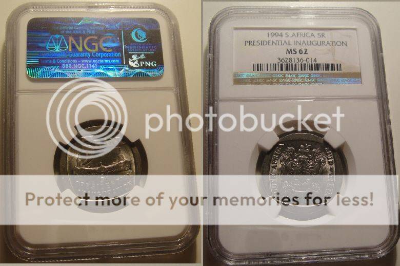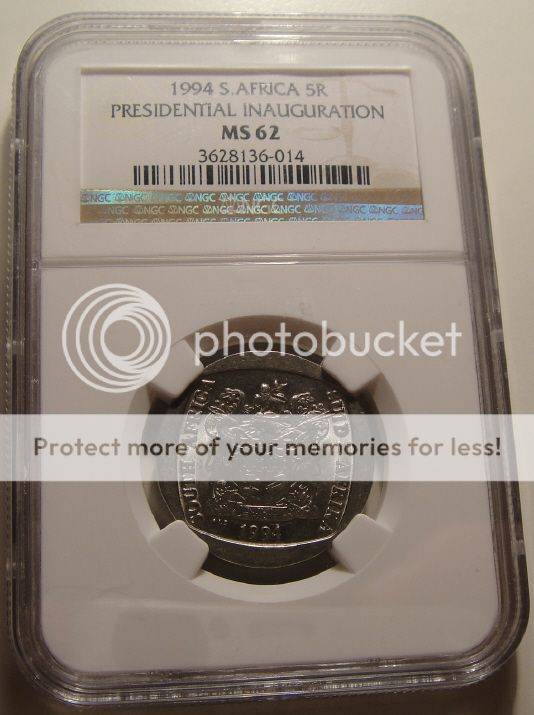 Mandela Presidential Inauguration (1994) R5 : NGC graded MS62 (2 available)