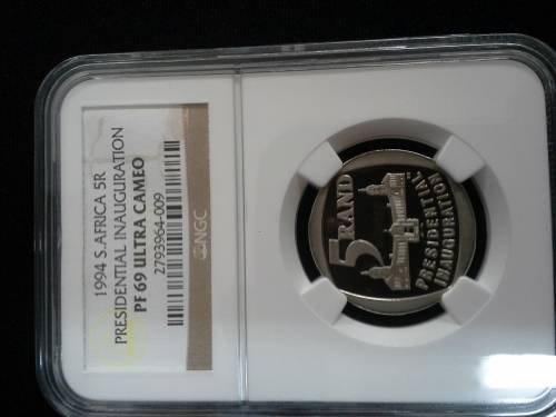 Mandela Presidential Inauguration PF69 NGC Graded PROOF R5 Coins, 2 available, bid per proof. B.i.F.