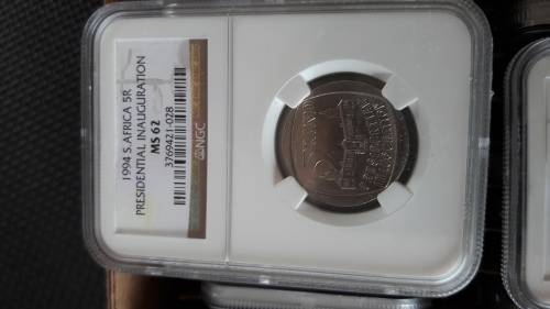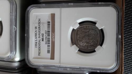10 x MS62 NGC Graded Mandela 1994 Presidential Inauguration R5 coins (minted 24 Years ago when Mandela became SA's first BLACK president.)