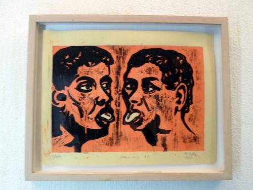 A stunning linocut from the "News Mix" portfolio! This beauty measures 30cm x 23cm and the frame measures 35cm x 28cm. It is signed, titled and edditioned. Own it today, bid now!