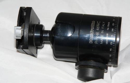 This is a big precision ballhead from Manfrotto - the best they made. It makes an excellent studio or macro ballhead. It accepts both RC4 and RC2 Quick Release Plate assemblies from Manfrotto or RRS, Wimberley and other Arca-Swiss type clamps that take a 1/4" or 6mm flat head center screw attachment.