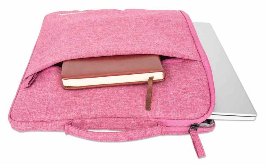 Manhattan Seattle Notebook Sleeve 15.6" - Top Load; Fits Most Laptops Up To 15.6", Premium Padding, Water-resistant, Notebook Compartment, Front Pocket, Handle, Pink, Retail Box, Limited Lifetime warranty