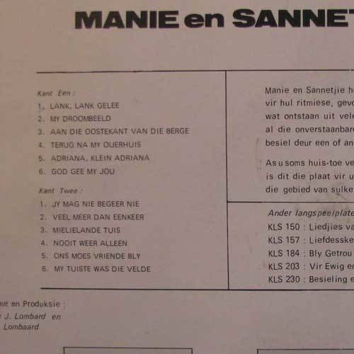 Manie en Sannetjie Putter -Terug na my ouerhuis LP Record