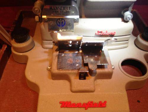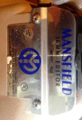 The editor is marked Mansfield 16mm Editor, model 960, Delux. It has both winding mechanisms, and the working parts all seem to be intact. However, it only has 1 Bell reel, and there is wear to the original casing box due to age. The reel tin is marked Posso, made in France.