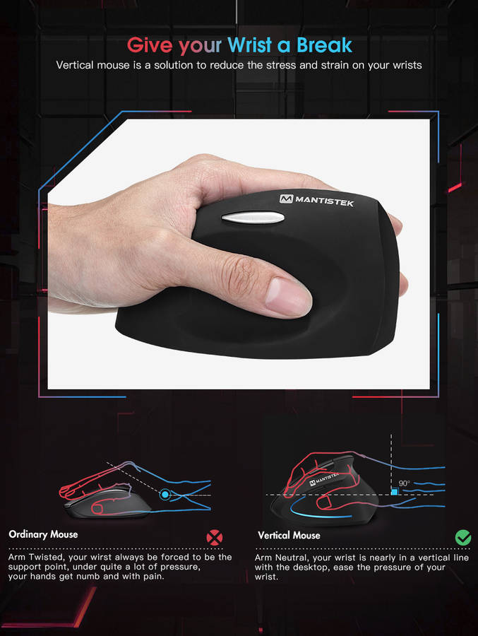Your hand with the arm keeps straight and placed naturally when you use a vertical mouse.