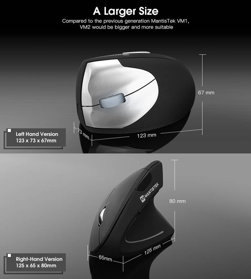 1 * MantisTek® VM2 1600DPI 2.4GHz Wireless Ergonomic Vertical Mouse