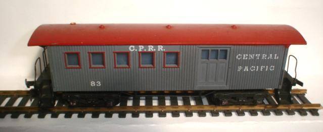 This car is all plastic with horn hook couplers. The bogies are metal, fitted with steel axils plastic wheel sets. (See photos). There is a faded spot on one side next to the sliding door and the chimney is missing. Please see photos for detail or contact me by e-mail if there are any questions.
