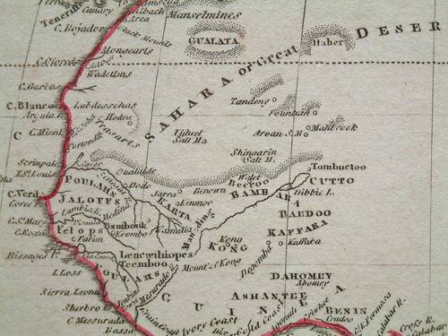 You are looking at an original 19th century map ‘Africa - Engraved March 1st 1803 Cadell & Davies London’. The map comes from Arrowsmiths "Map of Africa', an attractive map with outline in colour and interesting details and large areas with a distinct lack of any detail. The sheet, blank, and joined on the reverse, measures 270mm x 220mm.