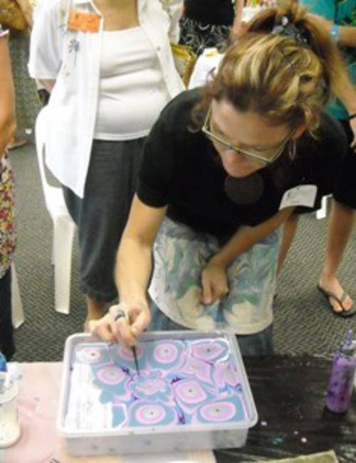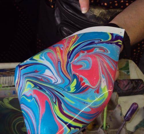 WHAT IS THIS MARBLING THING???Drop or flick colours on the thickened gel water with pipettes. Watch the droplets of paint expand into circles, making weird & wonderful patterns on the fluid surface. Draw in the paint with rakes and styluses, then when you are happy with the design…. lay down your choice of paper/fabric/wood/leather/ceramic or ribbons & let it drift on the gel surface….wait for it to absorb the paint…lift it up. WOW…MAGIC !! Your pattern stays on the paper/fabric etc. and does not wash off. No Artistic Bones are Needed….Your imagination is the only limitation.