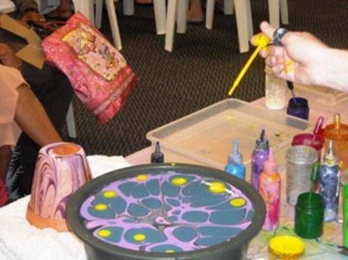 The Art Form of Marbling, as a colour therapy, spans across the boundaries of age, race, sex, religion, education and simply brings Complete and Instant,Creative Fulfillment. This is the beginning of a Magical Journey for all in South Africa. We believe that The Colour, Movement and Simplicity of the Marbling Process can bring Healing & Work Opportunity for many.