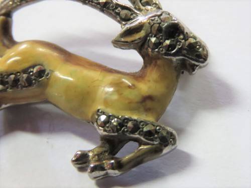 Marcasite German Mountain goat with enamel work pendant