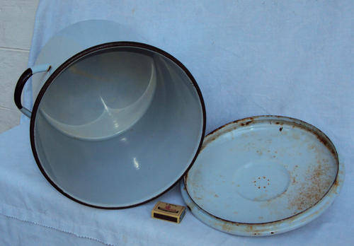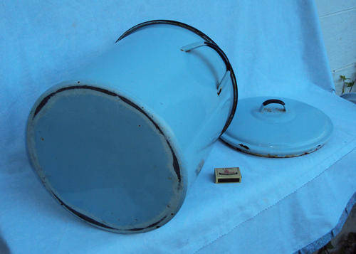 IMPRESSIVE LARGE OLD ENAMEL BIN.....HEAVY SO SORRY POST TO ANY SA DESTINATION WILL BE R52. MEASURES A NICE APPROXIMATE 37CM HIGH AND APPROXIMATELY 33CM WIDEST.