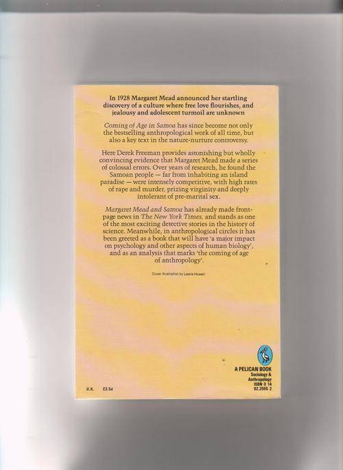 Derek Freeman, 1917 - 2001 Derek Freeman was born in 1917 in New Zealand, and from a very young age was interested in anthropology, tantalized by Margaret Mead's sojurns to Samoa. In 1940, Freeman traveled to Samoa and lived among the natives for three years where he taught and studied the culture. It was during this first trip, that Freeman began to doubt whether Mead's original research was in fact accurate. The Samoans he encountered did not resemble at all the culture that she had described. He continued his education with two years of graduate study on Samoa at London University, and then spending three years among the Iban of Borneo. He then spent two years at Cambridge University, earning his doctorate degree form there in 1953. In 1954, Freeman accepted a position as a senior lecturer in anthropology at the Australian National University, progressing to emeritus professor, where he continued to wonder at how Mead had reached her conclusions on the Samoans. He spent almost 40 years researching Asian and Pacific people, spending six years in Samoa and compiling a document stating the exact opposite of Margaret Mead's findings. He presented his document, "The Making and Unmaking of an Anthropological Myth," in 1983, five years after Mead's death, and was met with instant outrage and denial. Freeman stated that Mead's finding were inadequate from lack of preparation and a poor command of the Samoan language. This stand defied the school of American anthropological thought and met staunch disapproval there. Incidentally, Freeman did try to publish his dissertation while Mead was still alive but was rejected. Eventually, Freeman's ideas have come to be accepted and helped to modernize anthropology. Derek Freeman died on July 6, 2001 at the age of 84 from congestive heart failure.