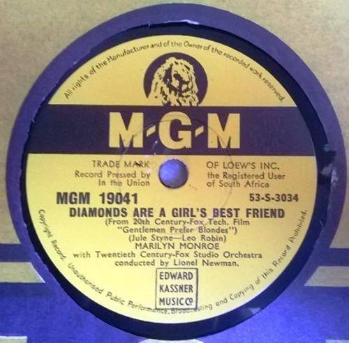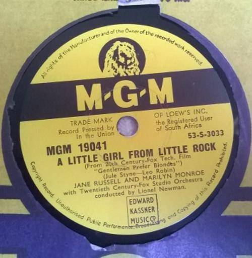 GRAMOPHONE RECORD - RARE UNION OF SOUTH AFRICA PRESSING - MARILYN MONROE!