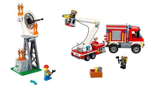 Save the TV satellite dish with the Fire Utility Truck, featuring a trailer with cherry picker that can be raised and lowered, a special stud-shooting hose with water elements, fire extinguisher, smoke gear and many accessories. Includes 3 minifigures: a technician, female firefighter and a male firefighter.
