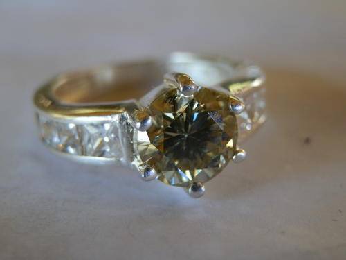 Stone: 1.75 ct Light fancy yellow moissanite diamond 7.84 mm diameter