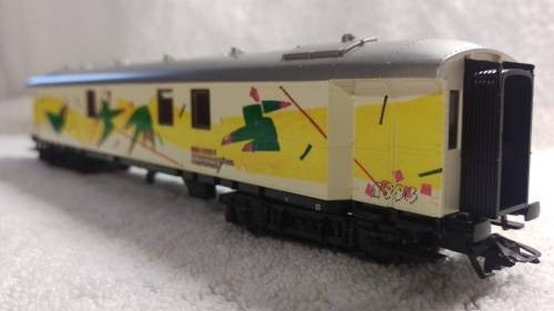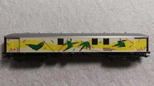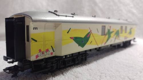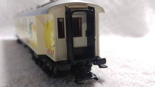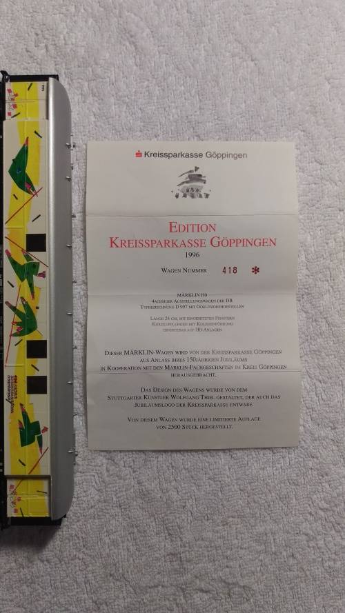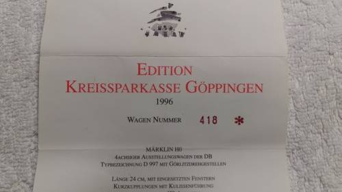 Again something different and ideal if you want to make up a consist of these exhibition wagons traveling between the town on your layout. Hair fine printing and Marklin quality detail.
