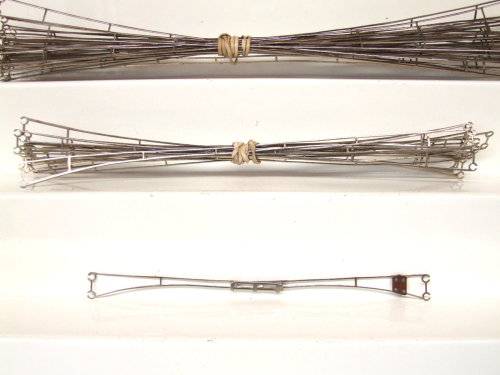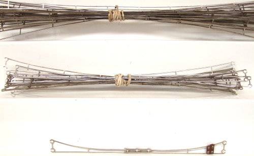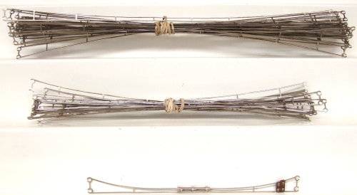 On auction is this catenary overhead electric wiring by Marklin in good un-boxed condition. There are two lengths; 22 x 380 mm and 12 x 280 mm + one extendable wire. Slight surface corrosion on the metal parts was mechanically removed. Please see photos for detail for it is part of the description. Contact me by e-mail for inquiries.