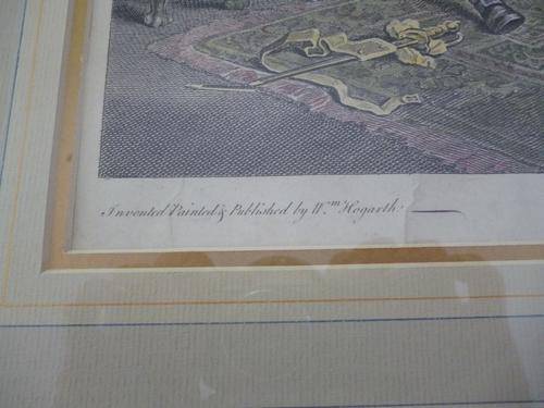 .Hogarth's wife Jane sold the plates to Boydell. The plates were then bought by the publisher Baldwin, Cradock and Joy at the Boydell sale in 1818. They published a book called "The Works of William Hogarth" in 1822 with the original plates restored by James Heath, engraver to His Majesty. The Heath edition was the last to print directly from Hogarth's original engraved plates. All 'Hogarth' prints appearing after this date are merely copies with either a recut plate or the 'engravers version'.' The print is rare, especially in this condition. Print is about 45 cm by 38 cm. We can post in our out of the excellent condition gilt frame and double mount, but we would prefer not to post with the glass. Frame is 74 by 66 cm.