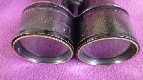 WHAT A SPECIAL FIND! REALLY OLD pair of binoculars - or Galilean field glasses. In very good working order, & good-looking for their age. Made of leather covered brass, they still have their original leather case. Length: 13cm x 12cm at widest point. There is no maker's mark, but they look very similar to those produced by Thomas Armstrong & Brother Ltd which were produced between 1837 & 1901 (see last picture from Historyme.wordpress.com). Also known as opera or theatre glasses, they were particularly popular among horse racing fans. They have 3 views and magnifications: "Theatre", "Field" and "Marine", which can be seen on the eyepiece-changing mechanism. (According to Watson (1995), in "Binoculars, Opera Glasses and Field Glasses", the differences in magnification aren't great).